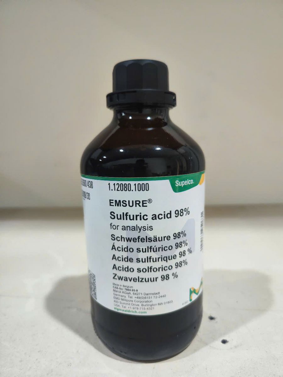 🔎 Theo dữ liệu từ trang chính thức Sigma-Aldrich, 112080 là mã sản phẩm của acid sulfuric (axit sunfuric) — một axit vô cơ mạnh, được cung cấp dạng dung dịch đậm đặc ~98%, và được phân loại là for analysis (EMSURE®) phù hợp cho các ứng dụng phân tích và phòng thí nghiệm.